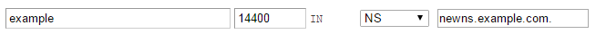 Enter in the subdomain and select NS as the type of record. For the hostname, put in the nameserver's hostname followed by a .
