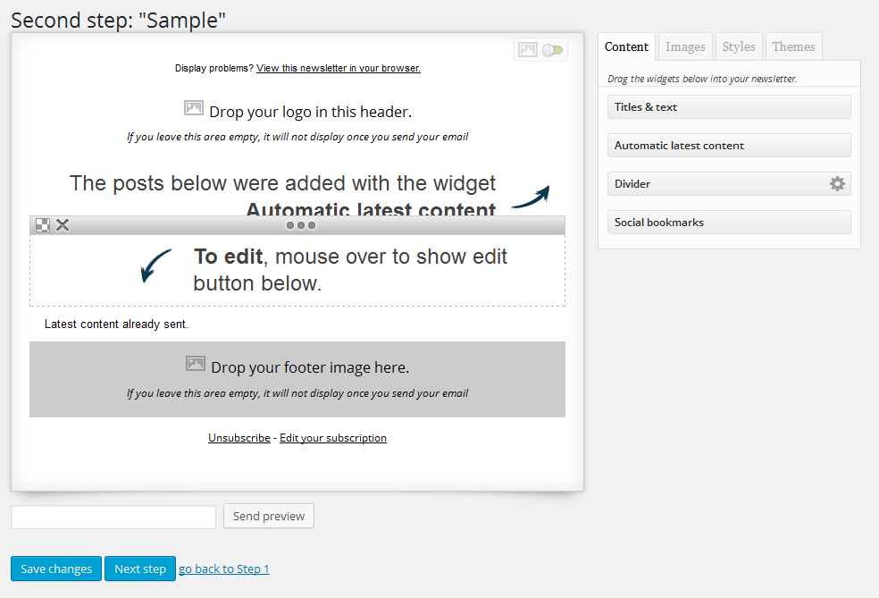 Once you have chosen the type of Newsletter and given it a name, you can start designing it.